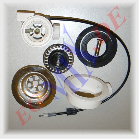 Korbventil für Excenterablaufgarnitur 3 1/2" mit anschluß für Überlauf besteht aus: - T-Stück für Excenterablaufgarnitur (Schraubverbindung) mit Bowdenzug Abgang nach unten / 1 1/2" - Unterteil für Ventilkelch mit Anschluß für Überlauf 25 mm - Ventilkelch Chromnickelstahl 18/10 ø 114 mm - Siebkörbchen für Excenterbetätigung - Hohlschraube 35 mm - Dichtungen