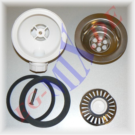 Korbventil 3 1/2" mit Anschluß für Überlauf besteht aus: - Unterteil für Ventilkelch mit Anschluß für Überlauf 25 mm Abgang nach unten / 1 1/2" - Ventilkelch Chromnickelstahl 18/10 ø 114 mm - Siebkörbchen für Handbetätigung - Hohlschraube 35 mm - Dichtungen