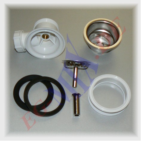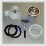 Überlaufventil 1,5" für Hohlschraube komplett für Überlauf von obenMetallkelch 70 mm Kelchunterteil mit Abgang nach untenSiebkörbchen ohne Dichtung