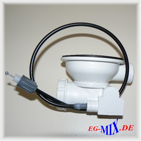 !!!! Neue Ausführung !!! Anschluß für Überlauf mit Steckmuffe. Bowdenzug Ausführung mit Kunststoffverschraubung (in Verbindung mit Drehgriff mit Grobgewinde). Geeignet für Viega Excenter-Ablaufgarnituren