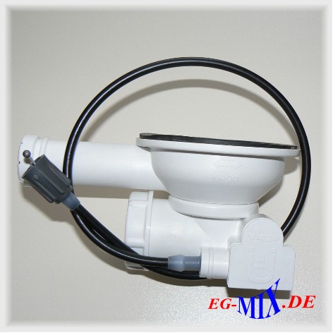 !!!! Neue Ausführung !!! Anschluß für Überlauf mit Steckmuffe lang. Bowdenzug Ausführung mit Kunststoffverschraubung (in Verbindung mit Drehgriff mit Grobgewinde). Geeignet für Viega Excenter-Ablaufgarnituren