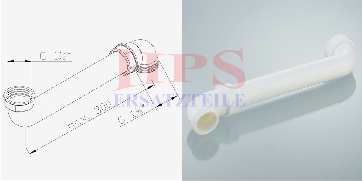 HPS-Raumsparbogen 1 1/2" 40 x 300 mm 1 x Verschraubung mit Flachdichtung1 x Verschraubung mit Konusdichtung und Abgang für Geruchsverschluß