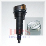 Excenterdrehbetätigung mit Drehknopf rund Kunststoff matt-verchromt ø 44 mm ( neutral ohne Logo ) Bohrung in Spüle oder Arbeitsplatte ø 28-35 mm Achtung: Für Bowdenzug mit Kugel und Kunststoffüberwurfverschraubung.