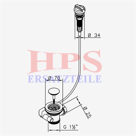 Excenterventil 1 1/2" besteht aus: - Bowdenzug mit Drehgriff matt-verchomt - Unterteil für Kegelkelch mit Anschluß für Überlauf - Kegelkelch Chromnickelstahl 70 mm - Kegel für Excenterbetätigung - Hohlschraube 35 mm - Dichtungen