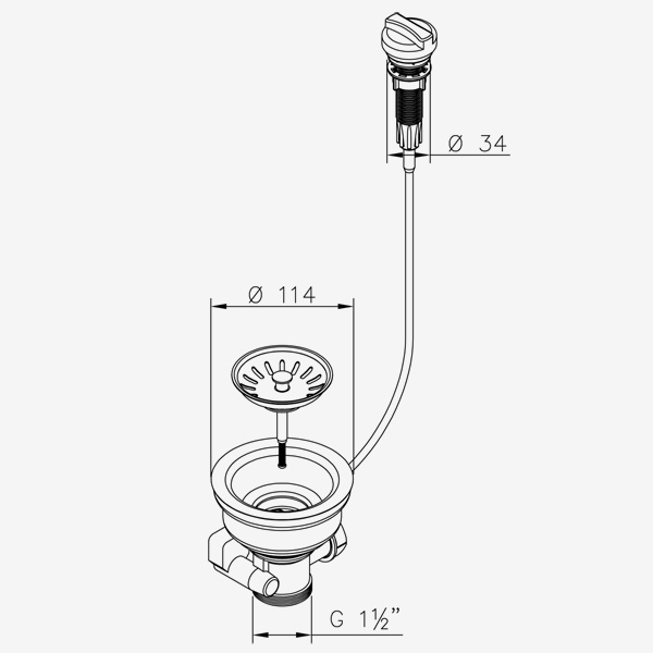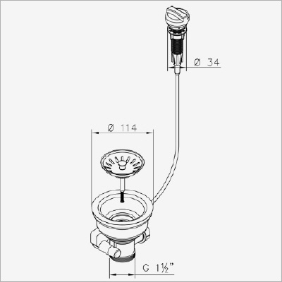 Korbventil für Excenterablaufgarnitur 3 1/2" mit anschluß für Überlauf besteht aus: - T-Stück für Excenterablaufgarnitur (Schraubverbindung) mit Bowdenzug Abgang nach unten / 1 1/2" - Unterteil für Ventilkelch mit Anschluß für Überlauf - Ventilkelch Chromnickelstahl 18/10 ø 114 mm - Siebkörbchen für Excenterbetätigung - Hohlschraube 35 mm - Dichtungen