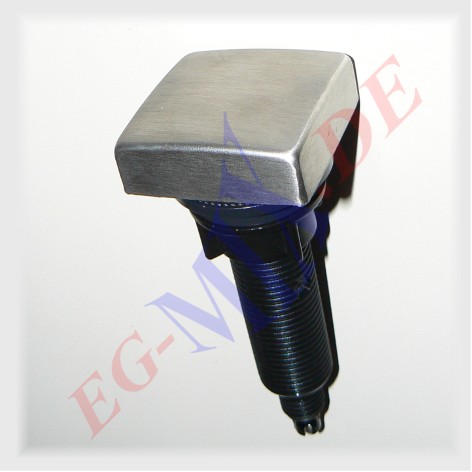 Excenterdrehbetätigung mit Drehknopf eckig / Edelstahl 45 x 45 mm ( neutral ohne Logo ) Bohrung in Spüle oder Arbeitsplatte ø 28-35 mm Achtung: Für Bowdenzug mit Kugel und Kunststoffüberwurfverschraubung.