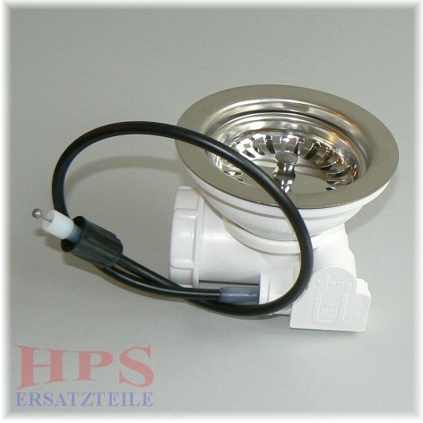 besteht aus: - Winkelstück ohne Anschluß für Überlauf - Anschluß für Ablaufrohr 40 mm Schraubverbindung - Ventilkelch 114 mm - Hohlschraube - Körbchen / Excenterbetätigung verchromt Ø 82 mm Lippendichtung Ø 52 mm 24 Ablaufschlitz - Bowdenzug 600 mm mit Kunststoffverschraubung