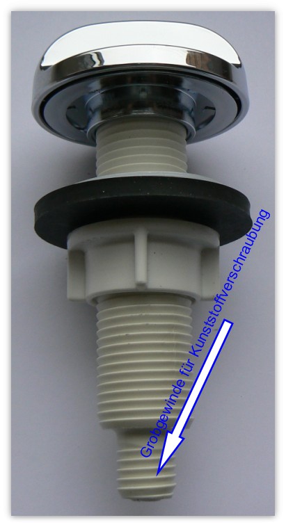 Geeignet für alle V&B-Ablaufgarnituren in Verbindung mit Bowdenzug mit Kunststoffverschraubung Grobgewinde ( neue Ausführung ab 2003 ) Abdeckkappe verchromt